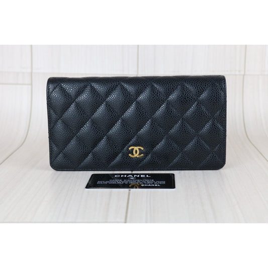 Very Good ( Rank A)|Full Set CHANEL Caviar Skin Black Long Wallet Made In 2015-2016Year|X25120702