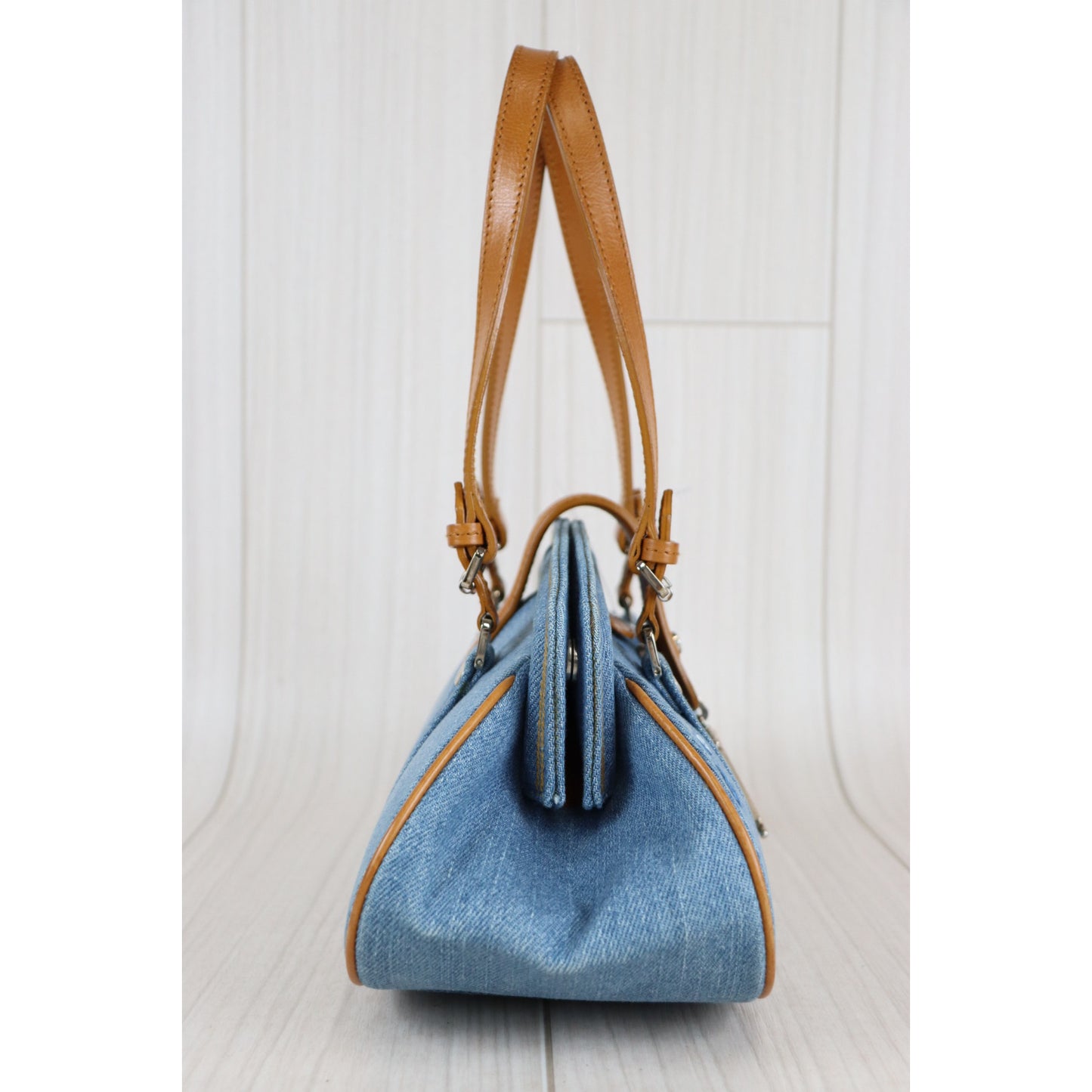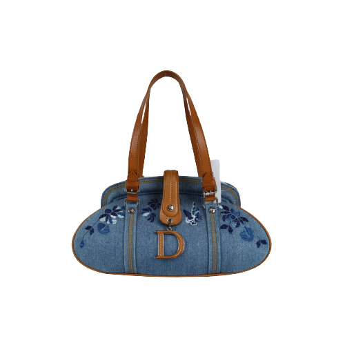 Rank A |Dior Denim Floral Embroidery Handbag |083113