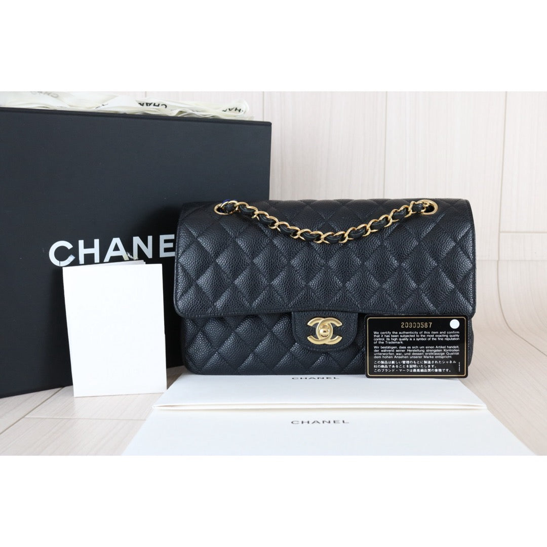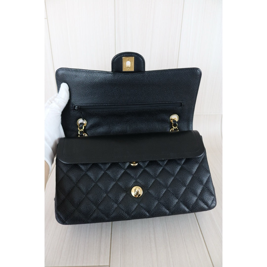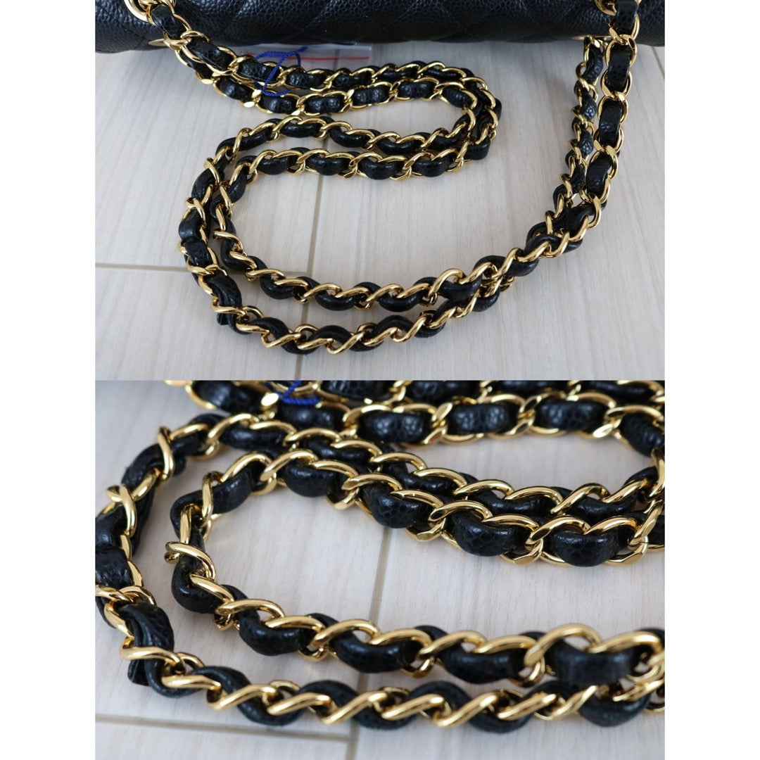 Excellent(Rank SA)| CHANEL Caviar Skin Matrasse Double Flap 25 Shoulder Bag Black Made In 2014-2015Year|S26030601