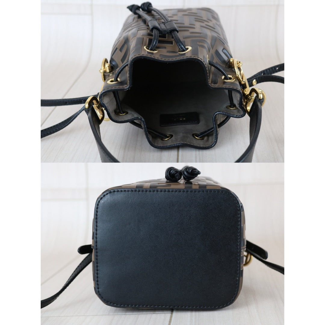 Good ( Rank AB)| FENDI Zucca Mini Mon Tresor Calf Leather Bucket bag Shoulder Bag Brown |S25122304