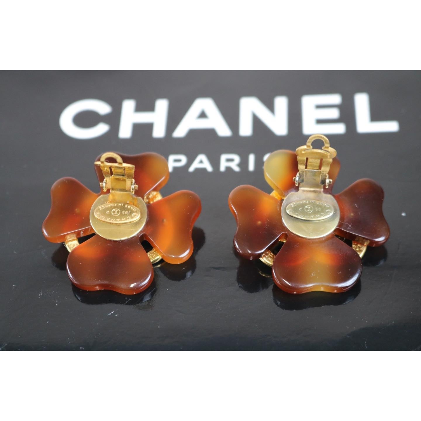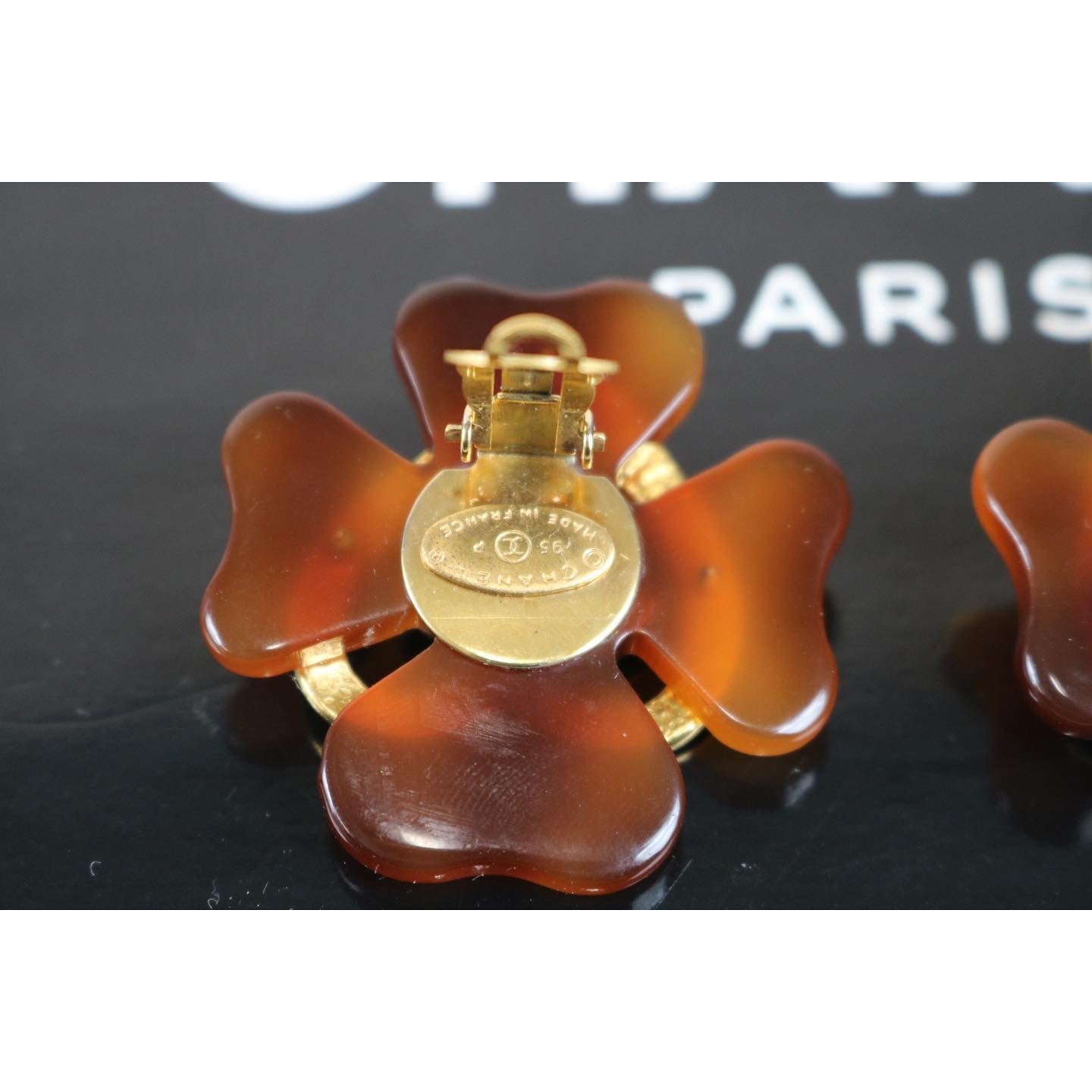Rank A | CHANEL Clover Cocomark Heart Earrings Tortoise Brown Gold 95P Vintage |122106