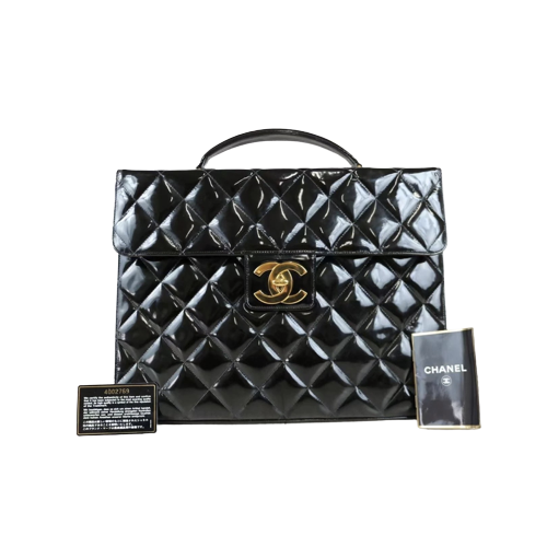Rank A |CHANEL Matrasse Briefcase Patent Leather |012101