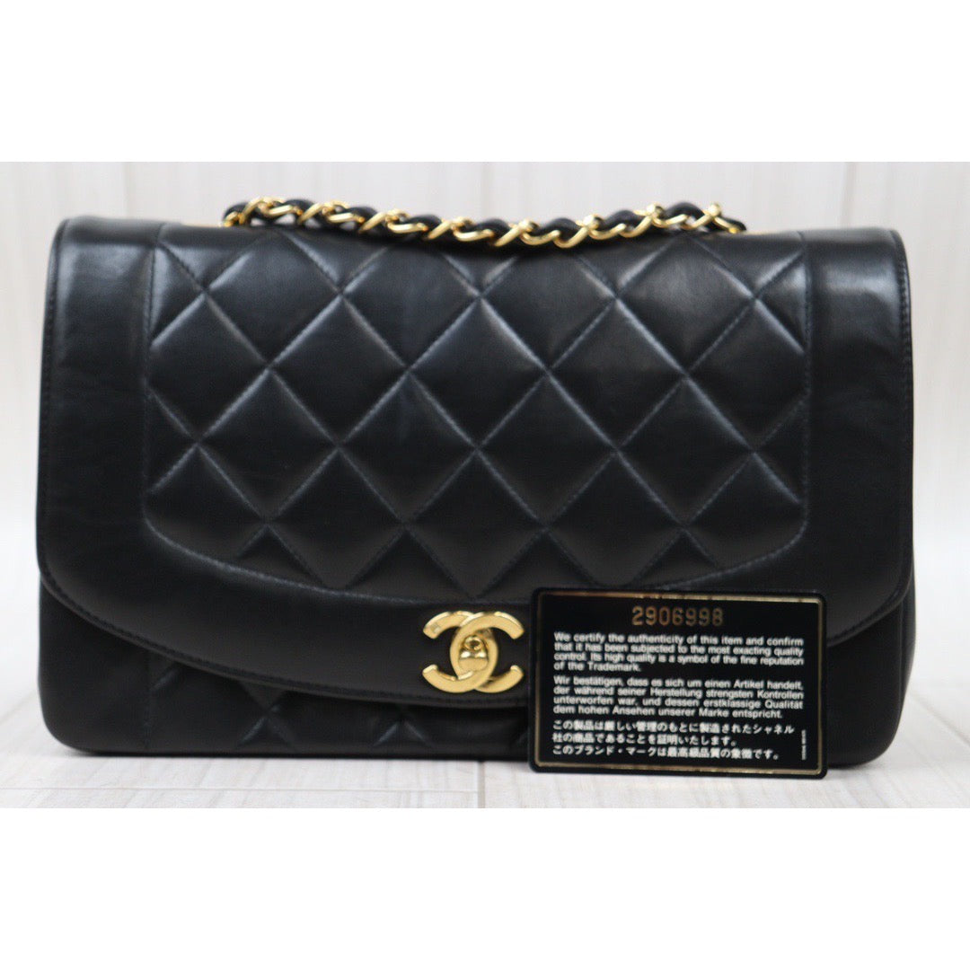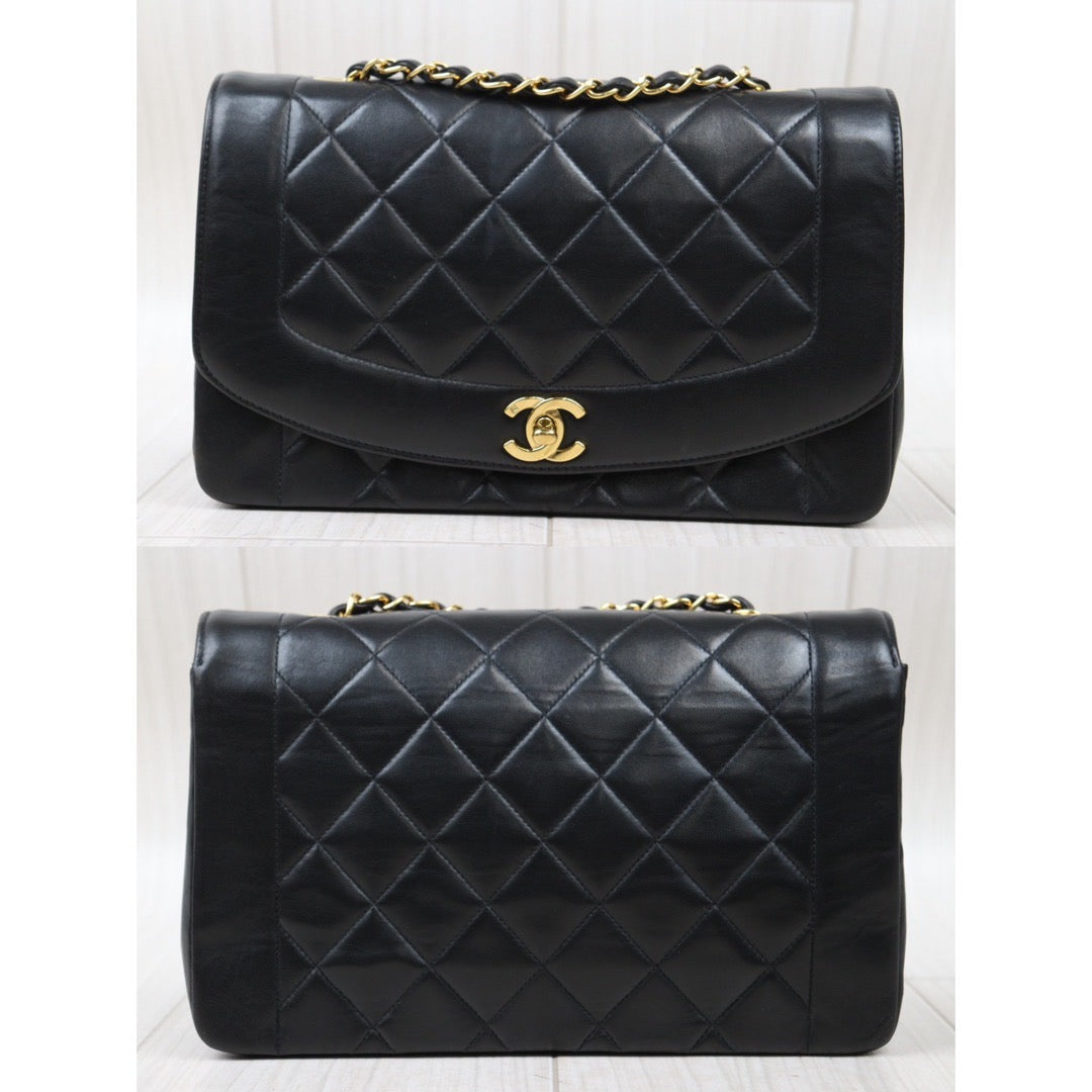 Rank A| CHANEL Matrasse Diana 25 Lamb Skin Chain Bag Made in 1991-1994 Year|P24061129