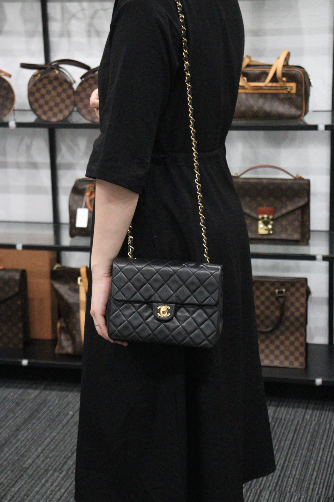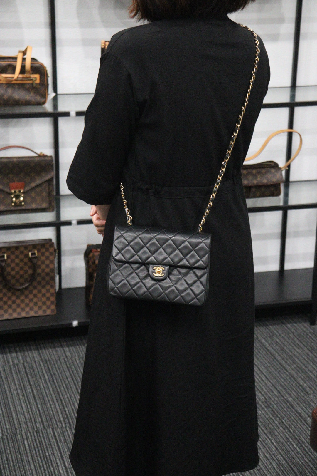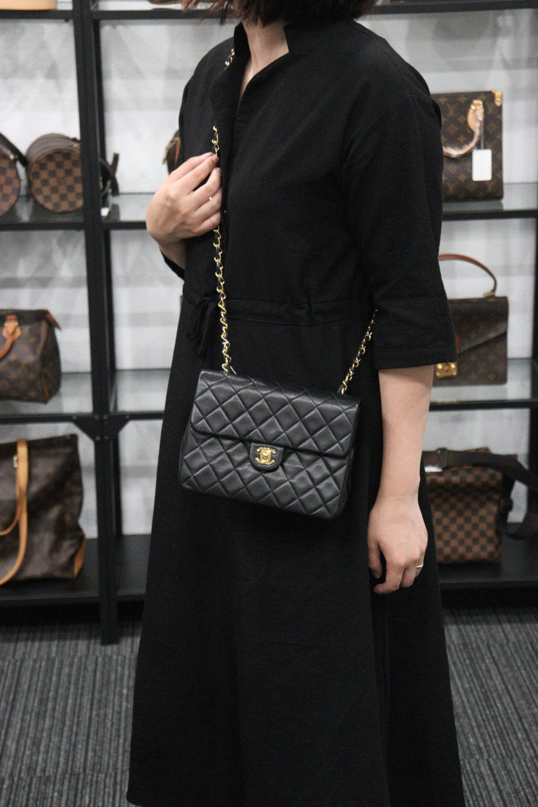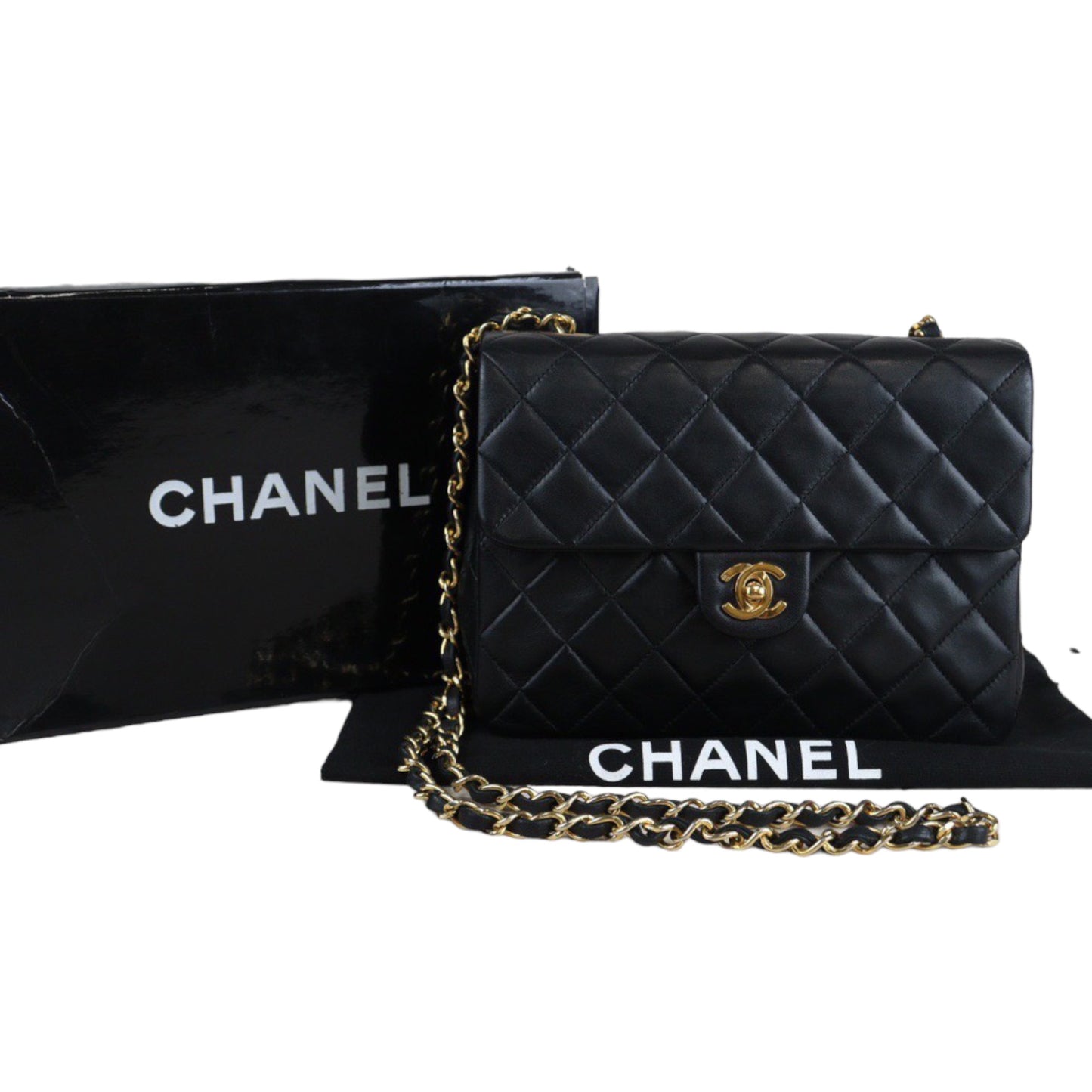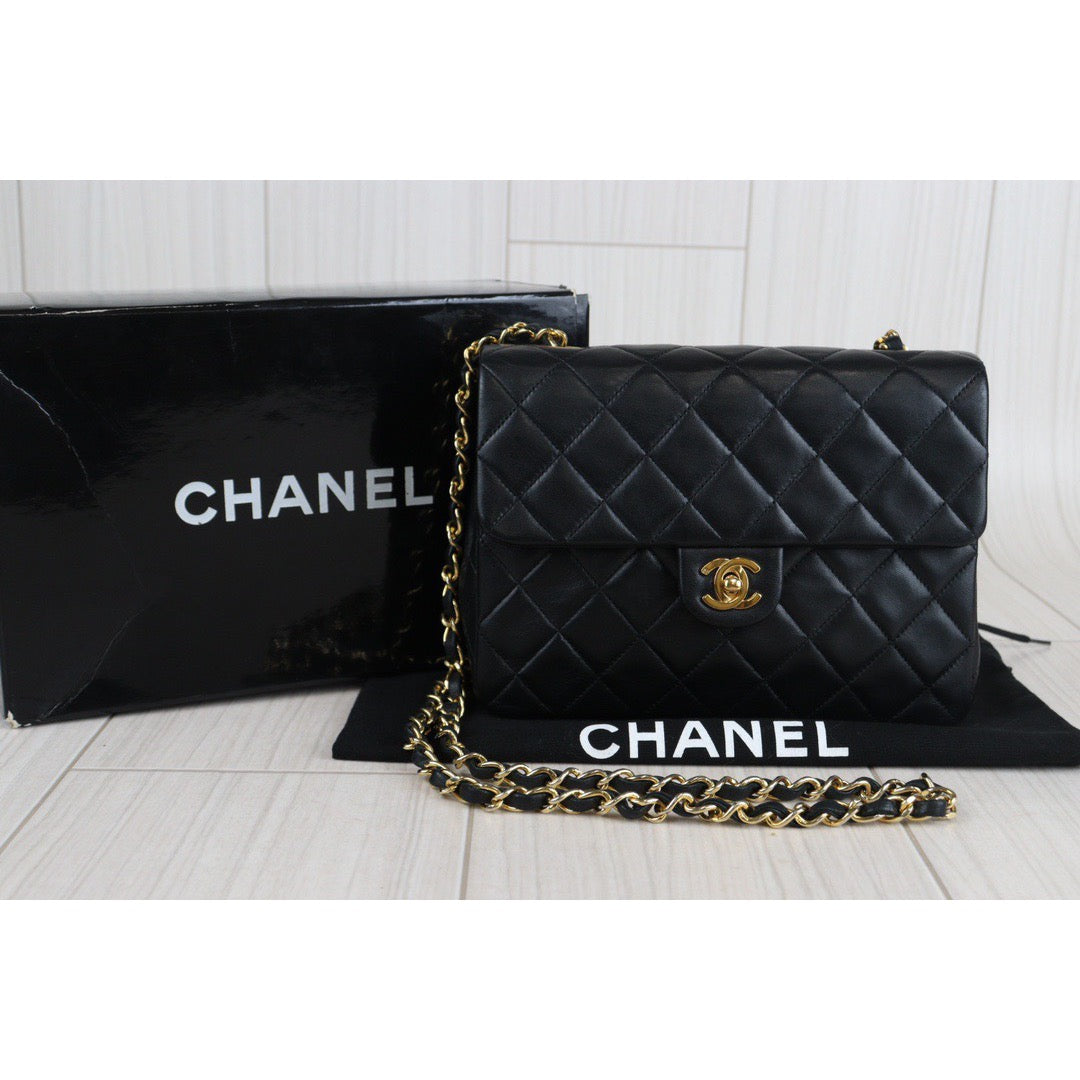 Rank AB | CHANEL Black Lanbskin Square 20 Shoulder Bag |230062604