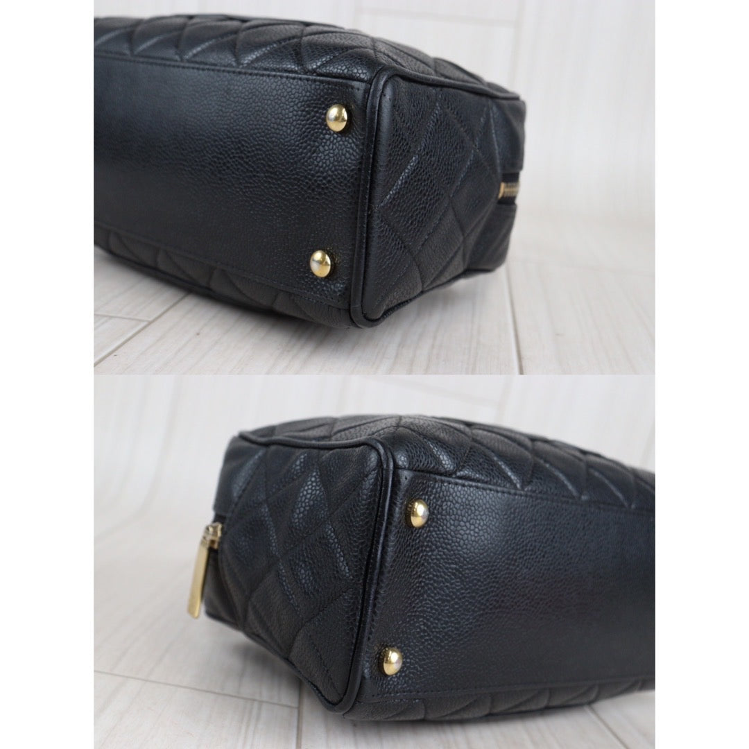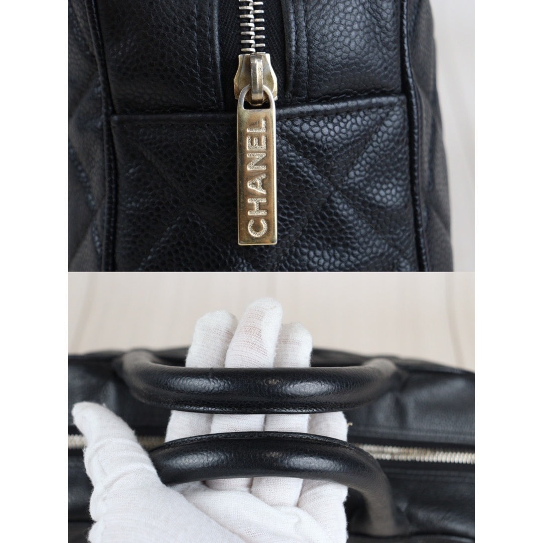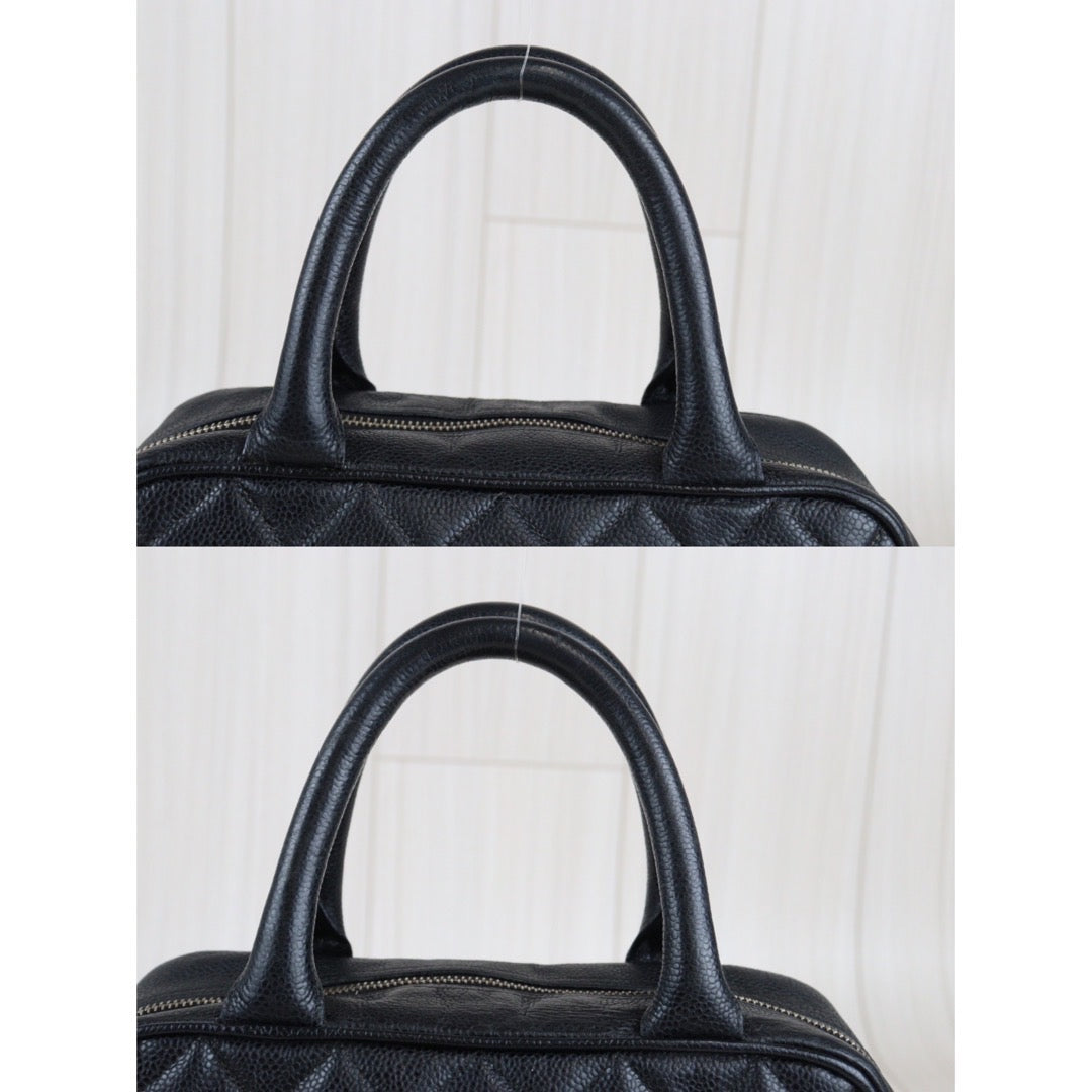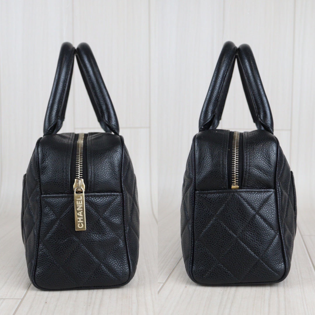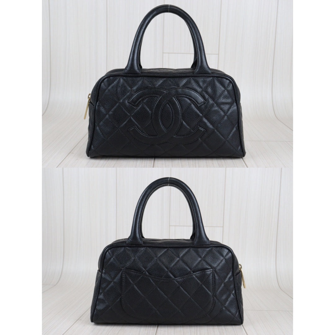 Rank AB | CHANEL Caviar Skin Bowling Bag Black|V23080315