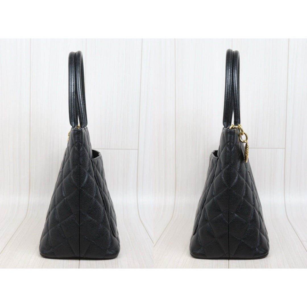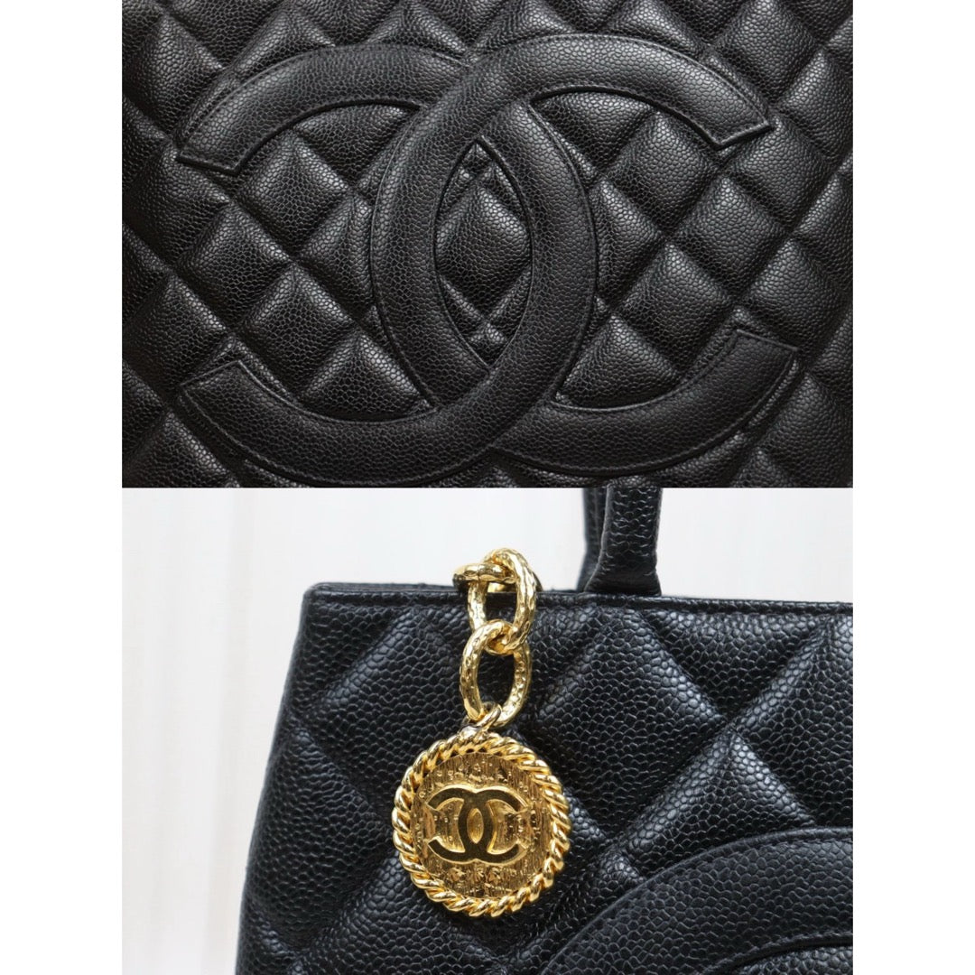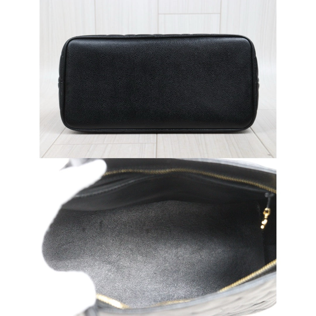 Very Good ( Rank A)| CHANEL Caviar Skin Calf Leather Tote Bag Black Made In 1997~1999Year|26020607