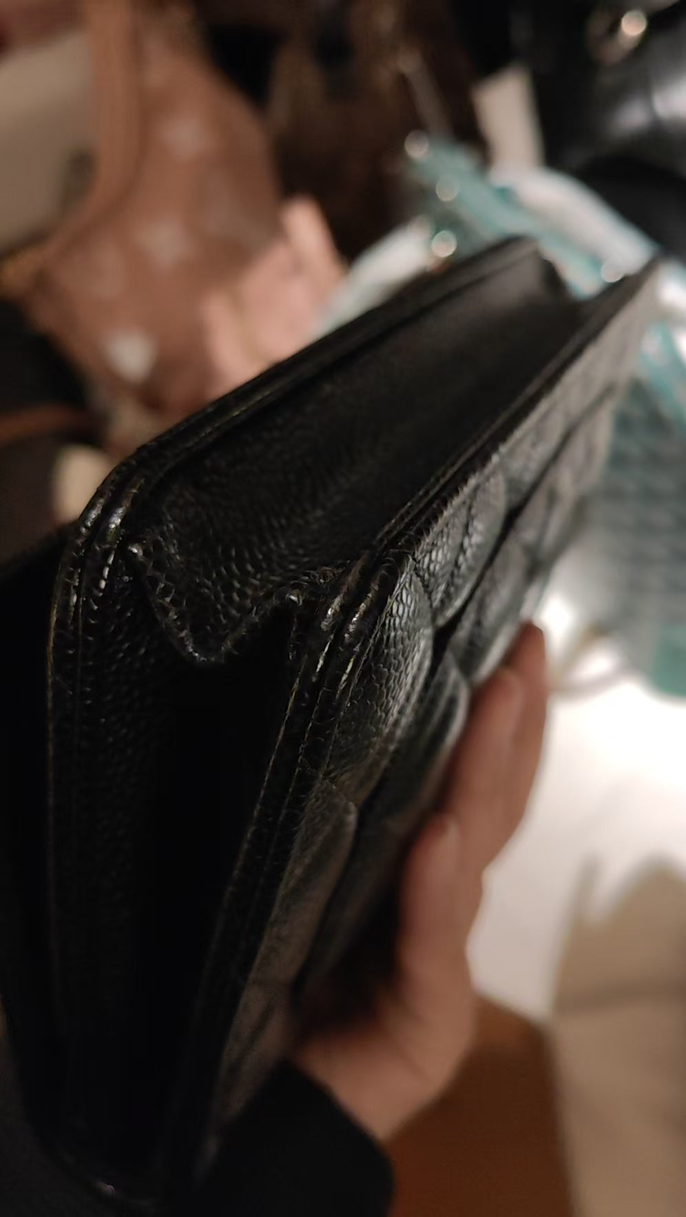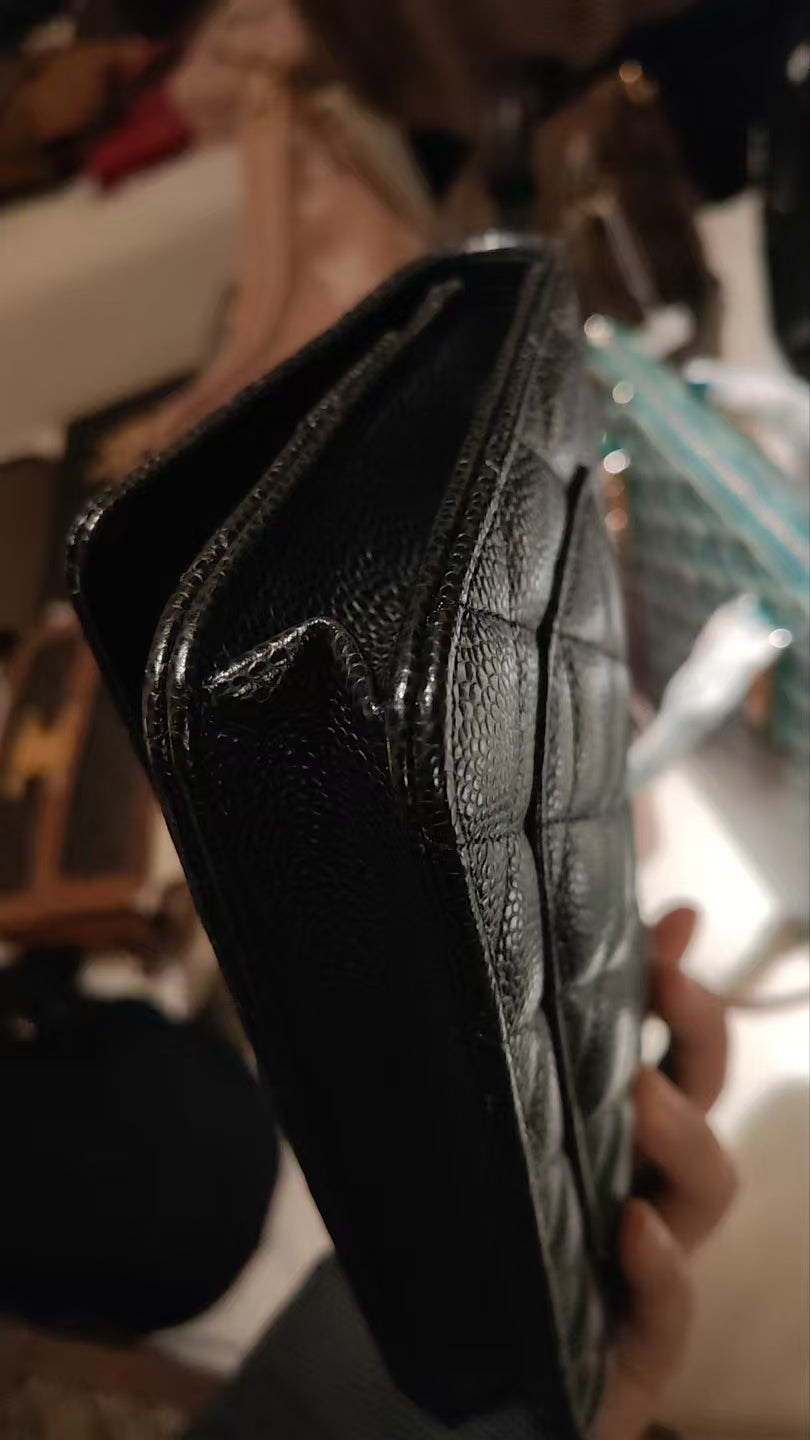 CHANEL Matelasse Caviar Skin Chain Wallet Black Silver Hardware Made in 2021-2022 Year