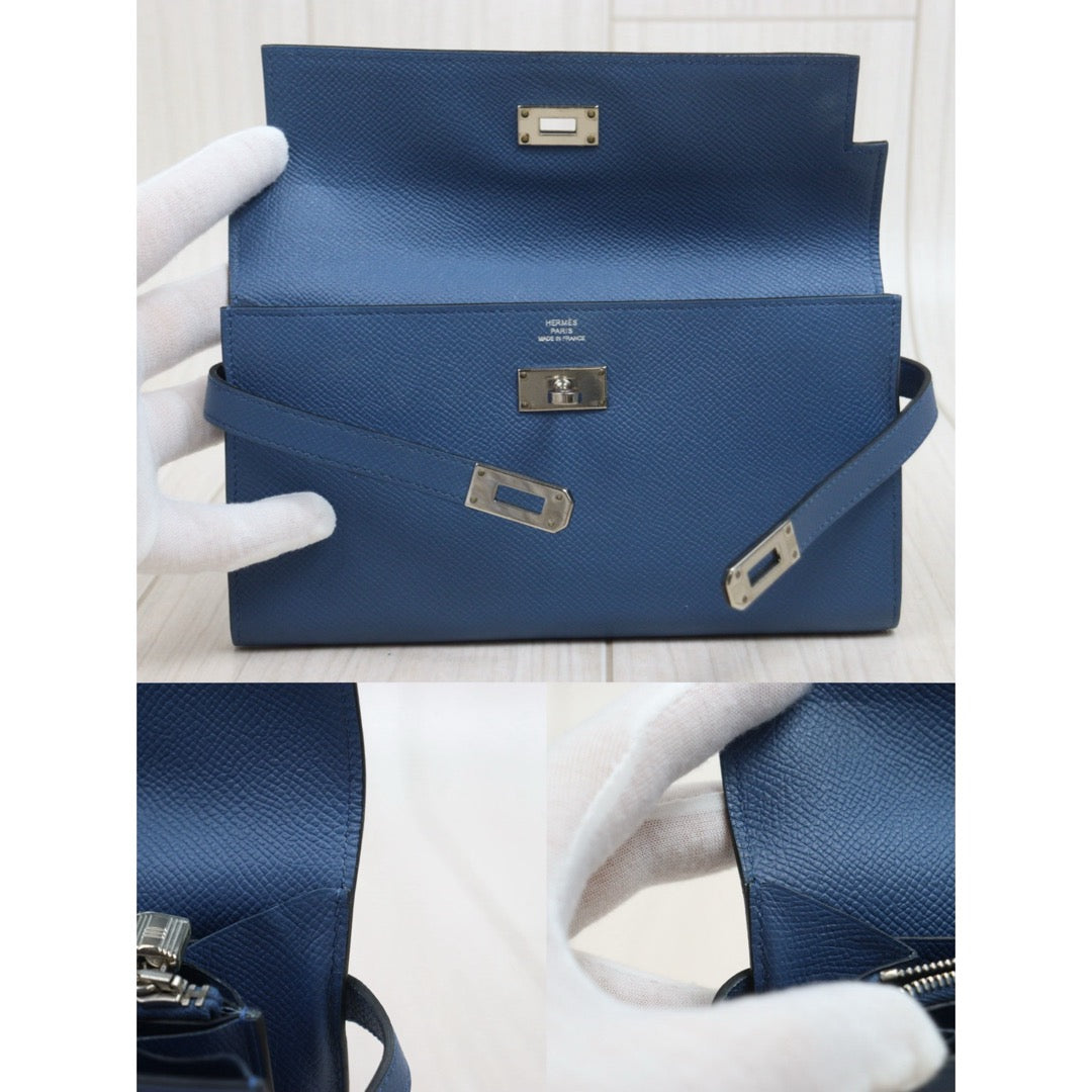 Very Good ( Rank A)| HERMES Epsom Kelly Long Wallet Agate Blue X Stamp Made In 2016Year|W26020603