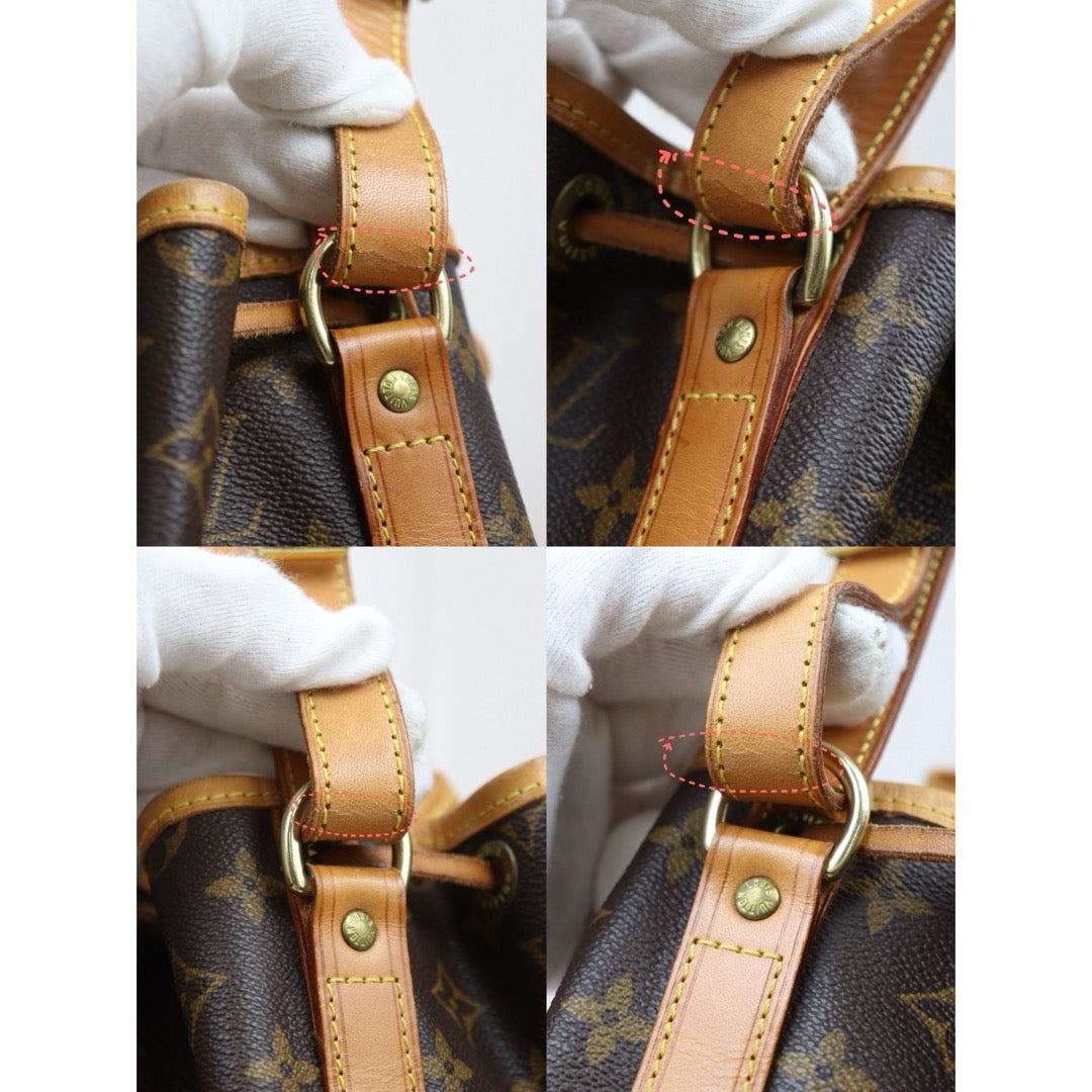 ● Outer:No scratches,No rubbing on the Monogram PVC,Sight stains on the tanned Leather,A little water stains