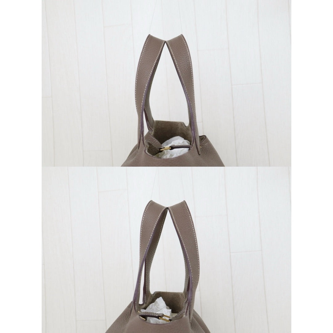 Good ( Rank AB)| Hermes Picotin Lock 22 TC Leather HandBag Etoupe Gray Z Stamp Made In 2021 Year|H25081803