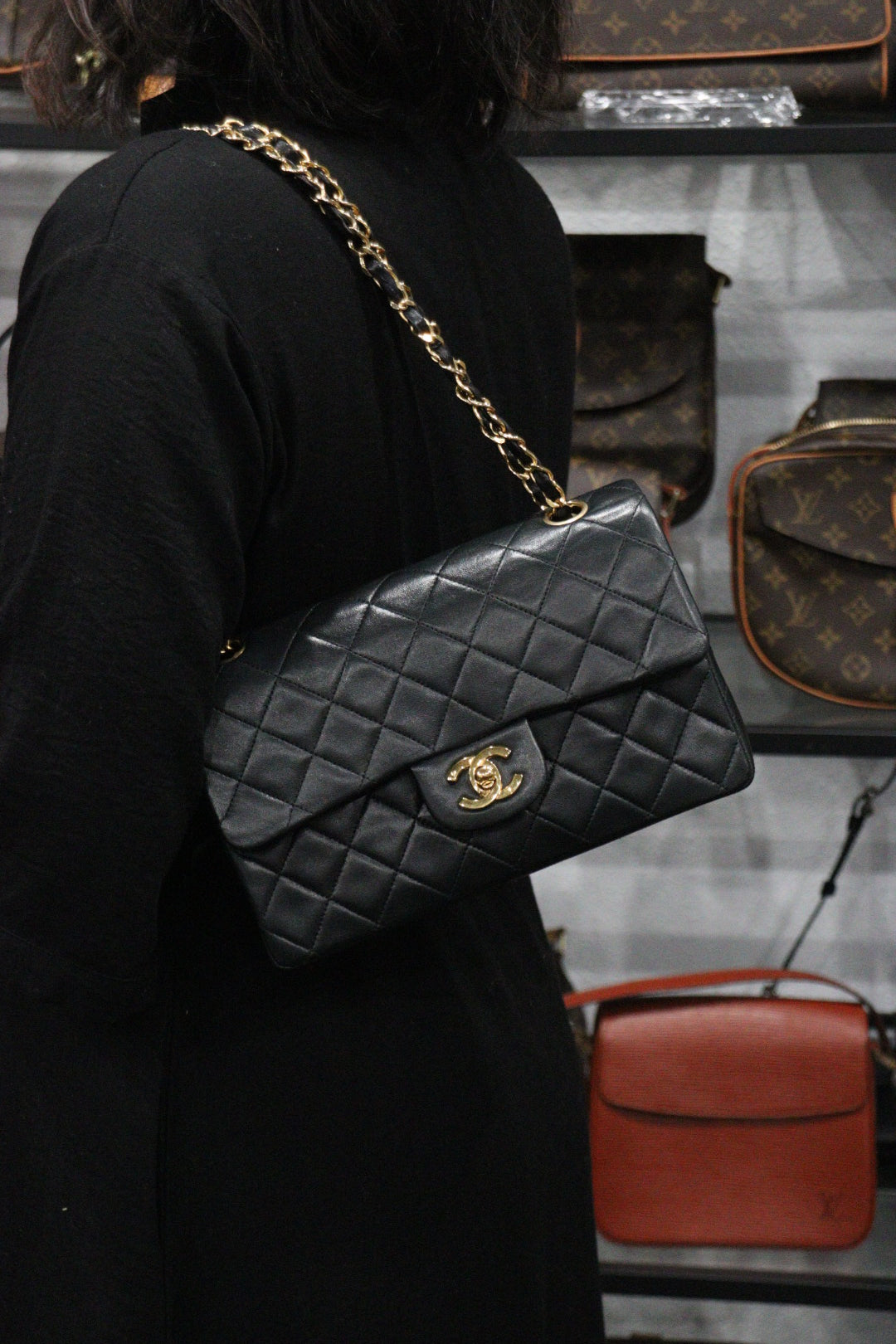 Rank AB | CHANEL Matrasse Double Flap 23 Shoulder Bag Black Made In 1986-1988 Year|23122401