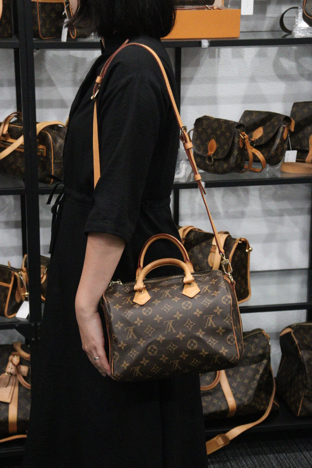 Rank AB | LV Monogram Speedy 25 With Shoulder Strap|23101408