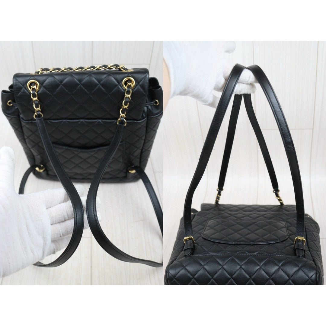 Very Good ( Rank A) | CHANEL Calf Leather Chain Backpack Black Made in 2019 Year|S25012701