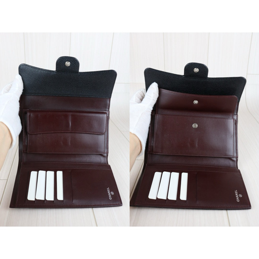 Very Good ( Rank A) |CHANEL Caviar Skin Black Long Wallet Made In 2014 Year|S25040706